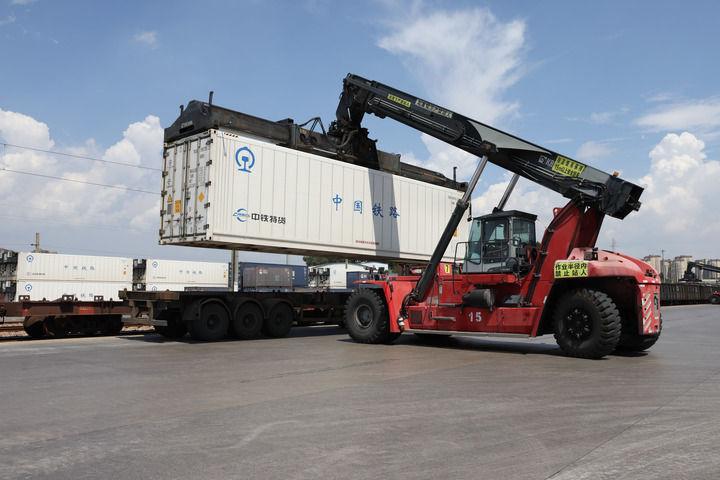 工作人員在中鐵聯集昆明中心站進行裝卸車作業(yè)(2024年8月2日攝)。新華社記者 呂帥 攝