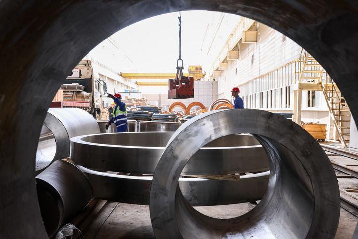 在蘭州蘭石集團高端裝備產業(yè)園,工人在生產車間作業(yè)(2024年7月25日攝)。新華社記者 呂帥 攝
