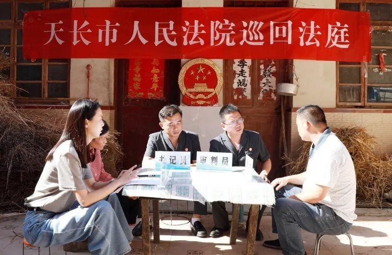 圖為安徽省天長市人民法院銅城人民法庭法官劉緒凱(右二)下鄉(xiāng)調(diào)解案件。