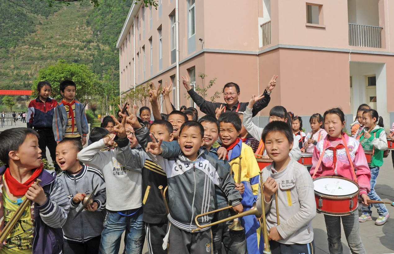 2011年4月,參加第四屆全國(guó)專家博客筆會(huì),采訪四川災(zāi)后重建成果時(shí)與孩子們?cè)谝黄稹?/span>