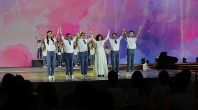 電子科技大學(xué)學(xué)生合唱團與退休教職工組成的銀杏合唱團共同演繹《一路生花》 楊曉恒攝