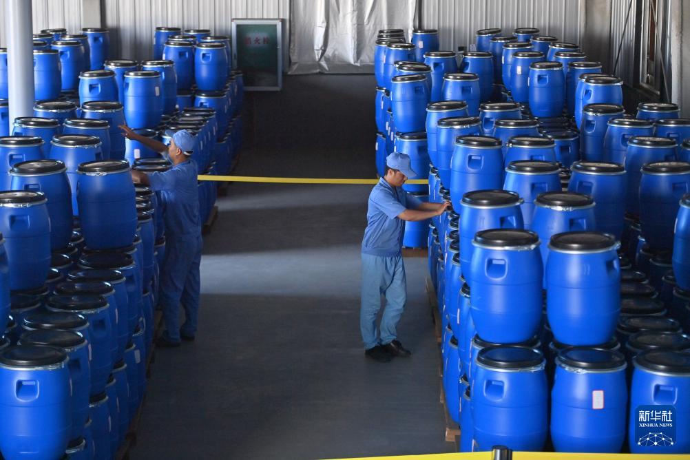 在廣西仙草堂制藥有限責任公司,工人在搬運青蒿素(8月27日攝)。
