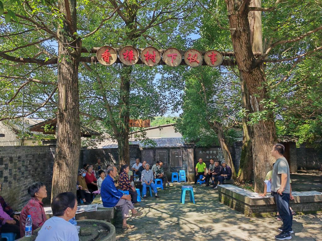 重慶市南川區(qū)木涼鎮(zhèn)漢場壩村的村民們在香樟樹下聆聽普法故事。新華社記者周思宇 攝