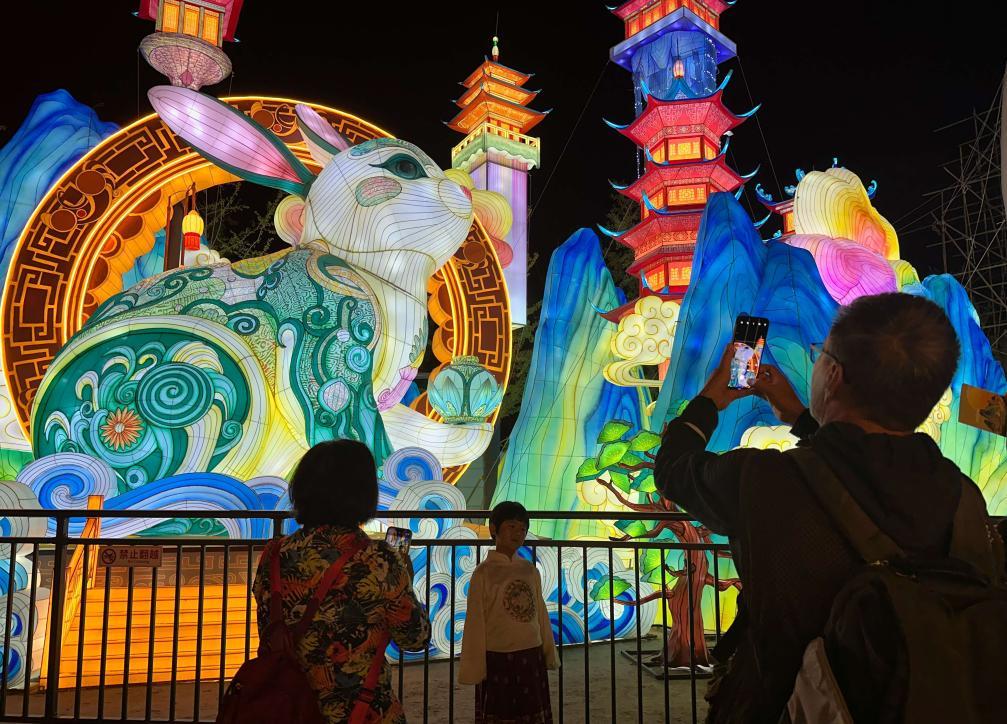 市民游客在2024年北京中秋國(guó)慶彩燈游園會(huì)欣賞彩燈。新華社記者楊淑君 攝
