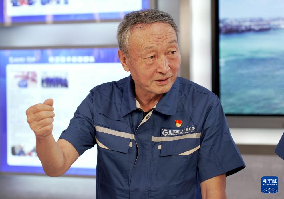 許振超在山東港口青島港集裝箱碼頭遠(yuǎn)眺(9月2日攝)。新華社發(fā)(閆軍攝)