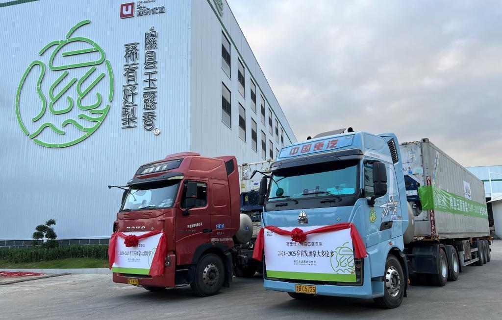 “9月12日,我們有兩貨車的玉露香梨出口發(fā)往加拿大的溫哥華和多倫多。截至目前,已有30個出口訂單,約2000噸產(chǎn)品,同比增加了近30%?!壁艨h北緯三十六度電子商務(wù)有限公司總經(jīng)理張利州說。