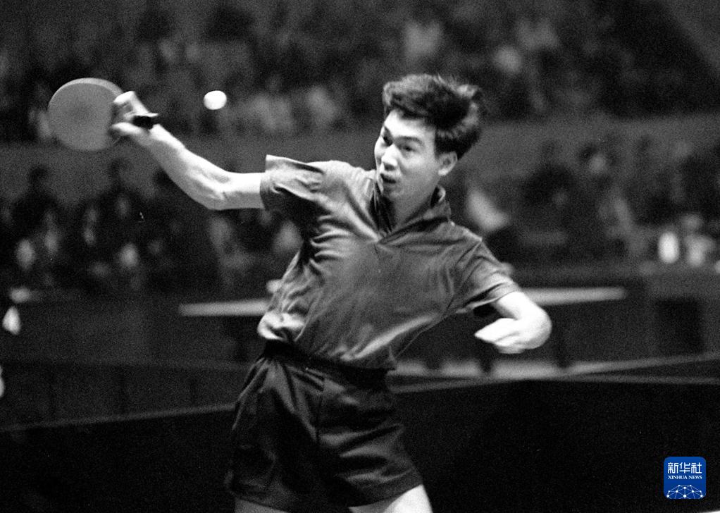 這是1961年4月11日,中國選手張燮林在第26屆世界乒乓球錦標(biāo)賽單項(xiàng)比賽中。新華社記者 鄒健東 攝