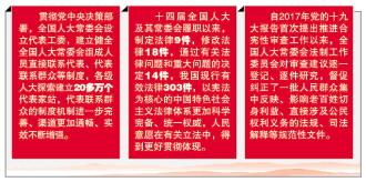 在編纂民法典過程中,完善“高空拋物墜物”規(guī)則,解決“頭頂上的安全”問題;制定無障礙環(huán)境建設(shè)法,運用法治力量保障殘疾人與老年人權(quán)益,提高人民生活品質(zhì)……十四屆全國人大及其常委會履職以來,制定法律9件,修改法律18件,通過有關(guān)法律問題和重大問題的決定14件,我國現(xiàn)行有效法律303件,以憲法為核心的中國特色社會主義法律體系更加科學(xué)完備、統(tǒng)一權(quán)威,人民意愿在有關(guān)立法中,得到更好貫徹體現(xiàn)。