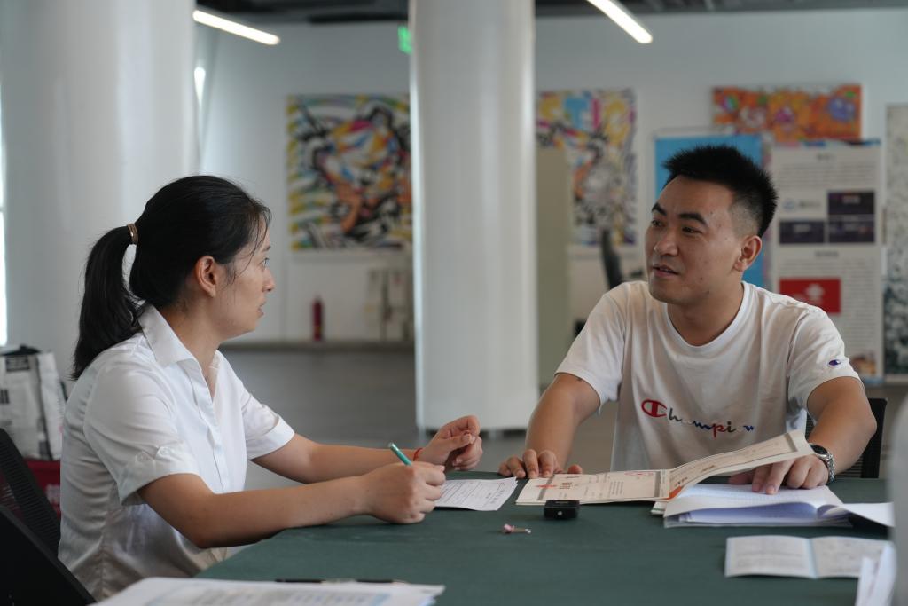 成都市成華區(qū)行政審批局在項(xiàng)目現(xiàn)場(chǎng)設(shè)立“流動(dòng)審批服務(wù)點(diǎn)”,為商戶辦理行政審批手續(xù)。(詹妮 攝)