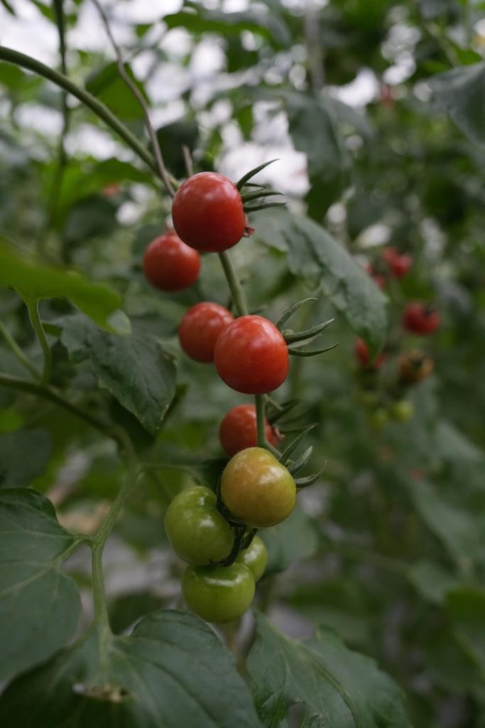 灣底村智能化玻璃溫室里的七彩番茄可供游客體驗(yàn)采摘。新華社記者周佳誼 攝