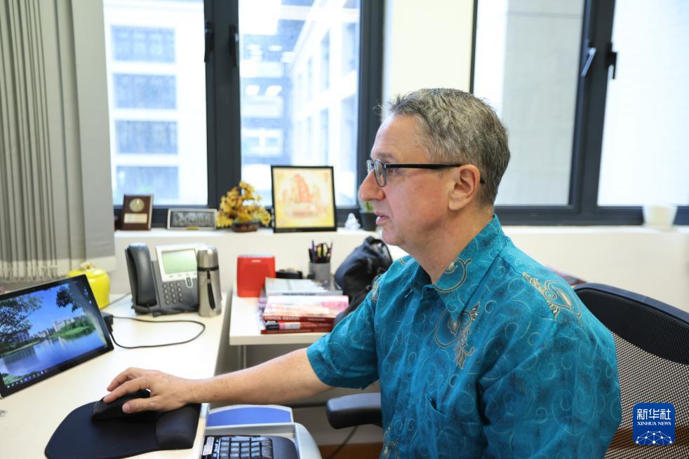2024年11月14日,澳門大學(xué)社會(huì)科學(xué)學(xué)院副教授、來自美國(guó)的托德·萊爾·桑德爾(中文名申大德)在辦公室工作。新華社記者 梁家駿 攝