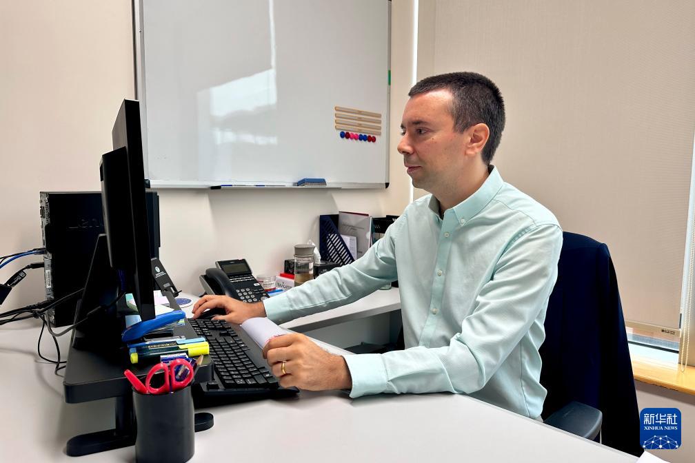 2024年11月21日,澳門城市大學(xué)葡語國(guó)家研究院的助理教授、來自葡萄牙的若昂·西蒙斯(中文名朱奧)在辦工室工作。新華社記者 王露 攝