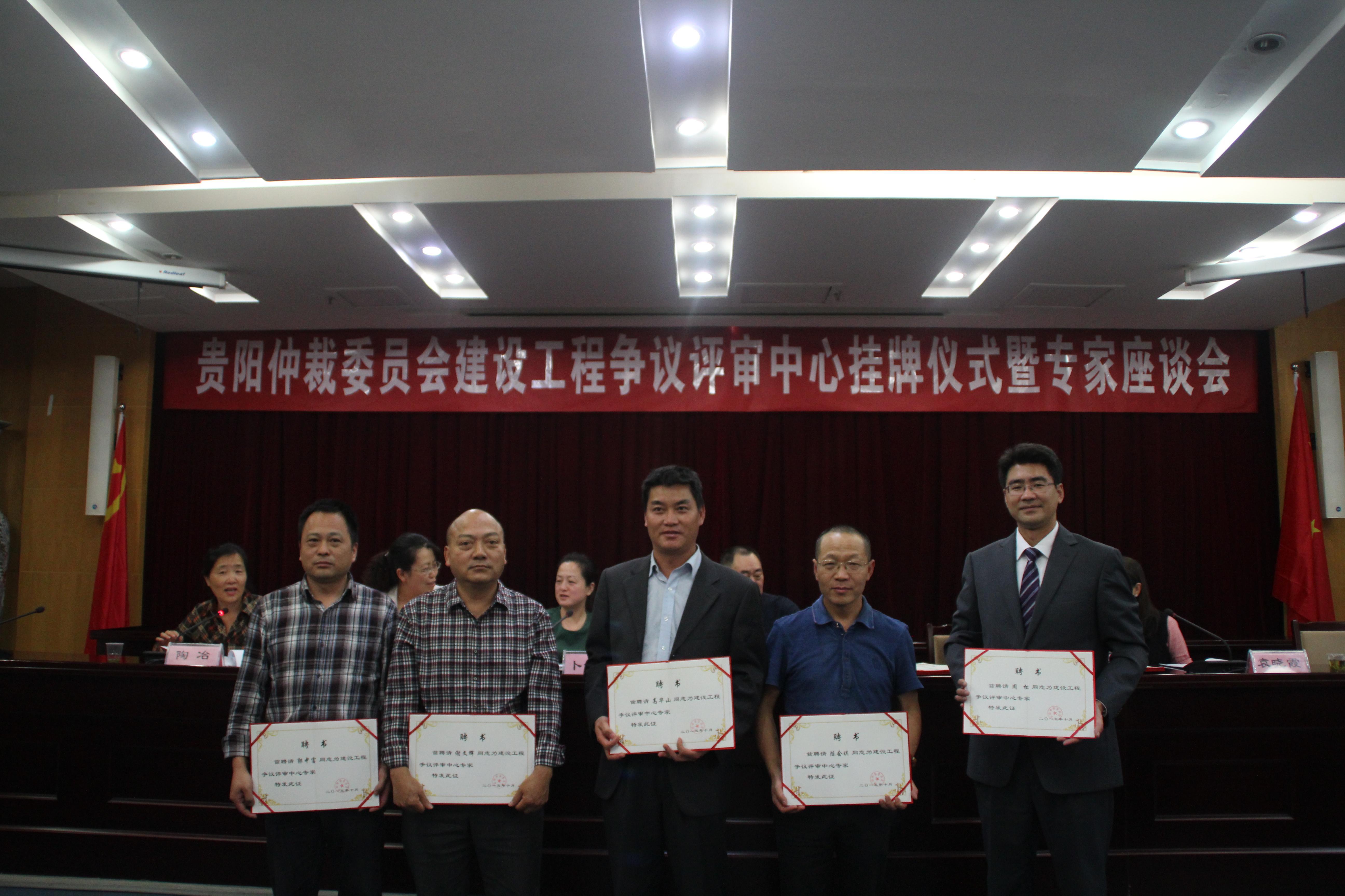 2015年10月29日,貴陽仲裁委員會為建設(shè)工程爭議評審專家頒發(fā)聘書。