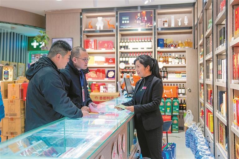 河南省漯河市郾城區(qū)紀(jì)委監(jiān)委緊盯關(guān)鍵節(jié)點(diǎn),成立專(zhuān)項(xiàng)督導(dǎo)組深入轄區(qū)商超、酒店了解情況,嚴(yán)防節(jié)日“四風(fēng)”問(wèn)題反彈回潮。圖為該區(qū)紀(jì)檢監(jiān)察干部在轄區(qū)商場(chǎng)了解相關(guān)情況。王曉 攝