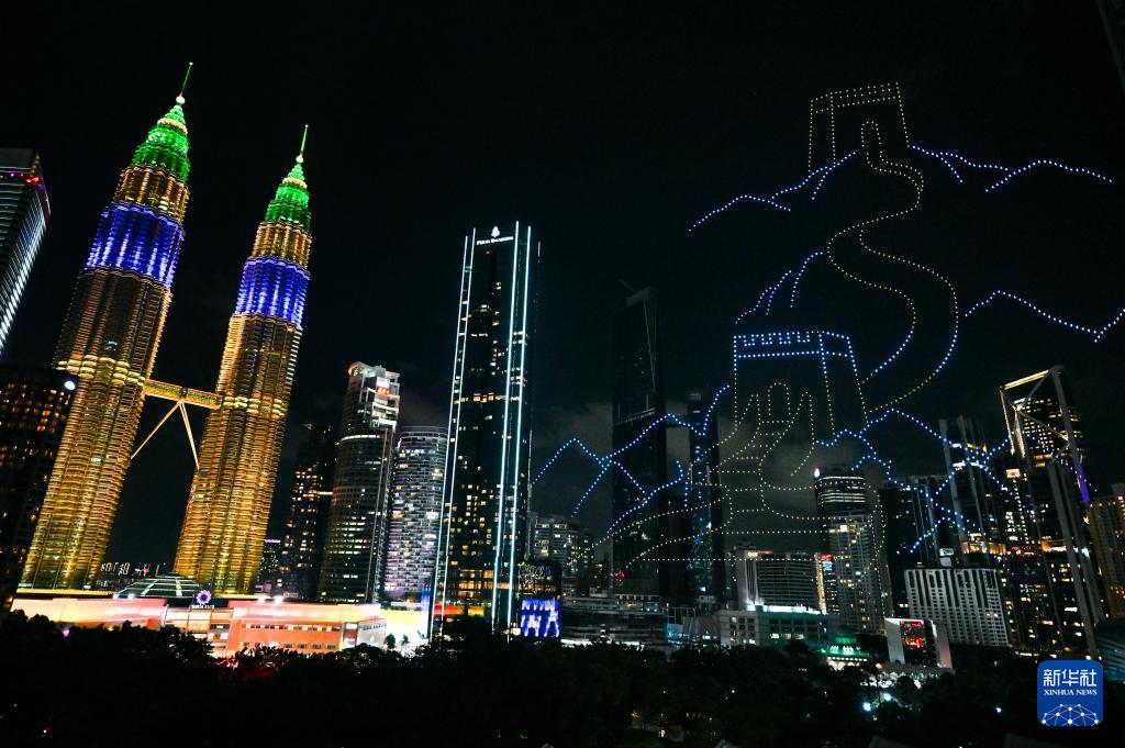 1月25日,在馬來西亞吉隆坡舉行的2025年“歡樂春節(jié)”全球啟動(dòng)儀式前,無人機(jī)展示長城圖案。