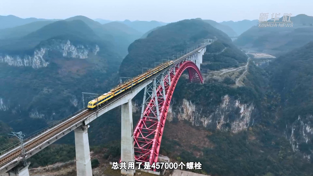 大橋全長810米,主跨352米,軌頂至水面高差約320米,該橋跨度為目前世界上單線鐵路同類橋型之最。