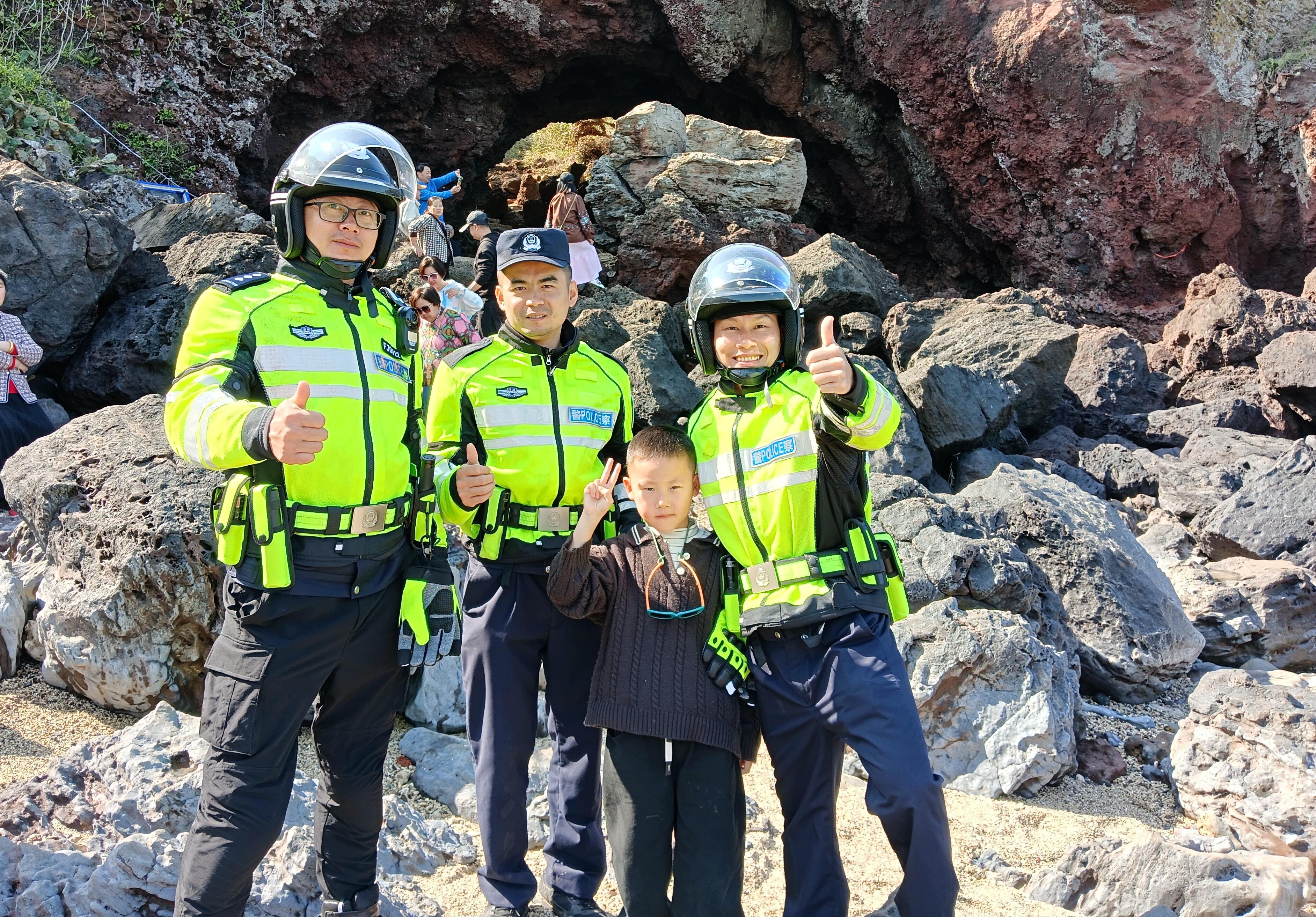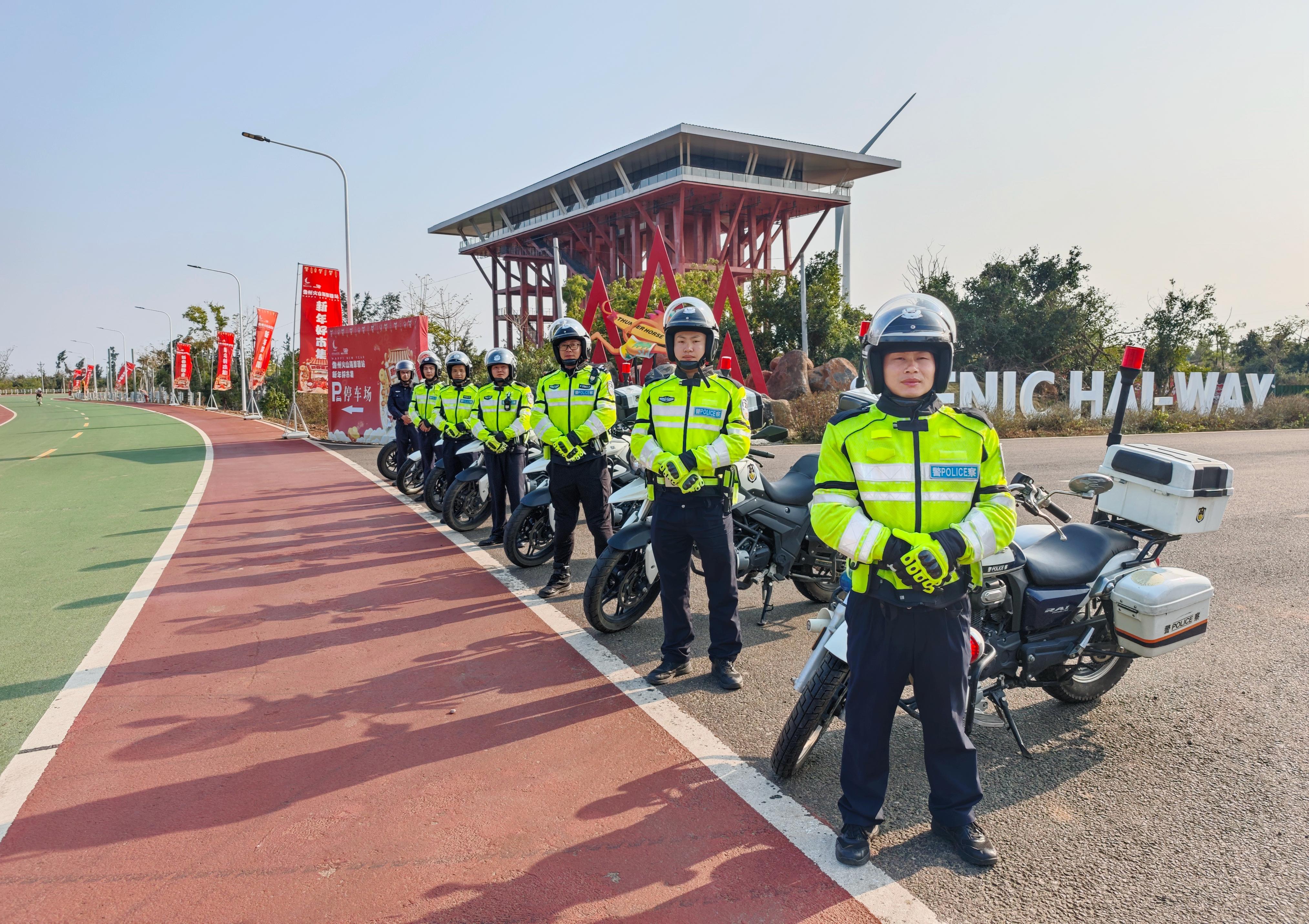 省公安廳反走私和管理總隊第七支隊警用摩托車隊員在旅游景點有序疏導交通
