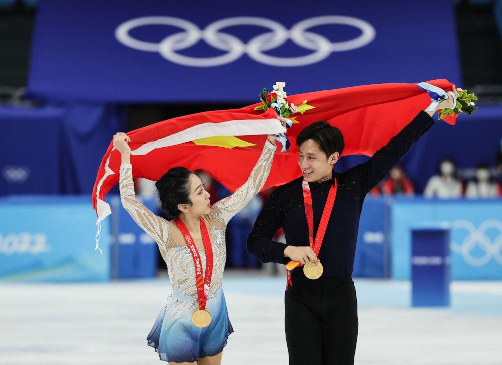 花樣滑冰被譽(yù)為“冰上芭蕾”,在北京冬奧會(huì)花樣滑冰的賽場(chǎng)上,隋文靜/韓聰為觀眾獻(xiàn)上了一場(chǎng)精彩的比賽,并站上最高領(lǐng)獎(jiǎng)臺(tái)。