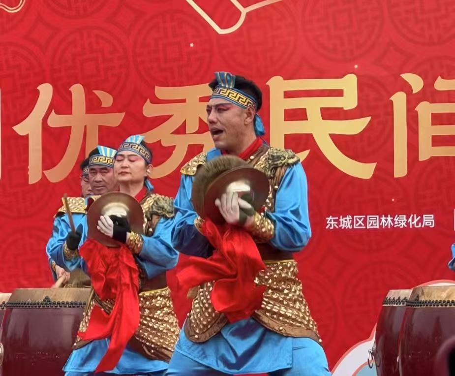只見一群身著傳統(tǒng)服飾的民間藝人正在表演仿清祭地儀式,莊重而神秘。緊接著,全國優(yōu)秀民間花會表演輪番登場,舞獅、鑼鼓、象帽舞等節(jié)目讓人目不暇接,喝彩聲此起彼伏。河北滄州劉吉舞獅表演,紅綢翻飛、獅頭眨眼引得不少“小觀眾”的尖叫鼓掌。