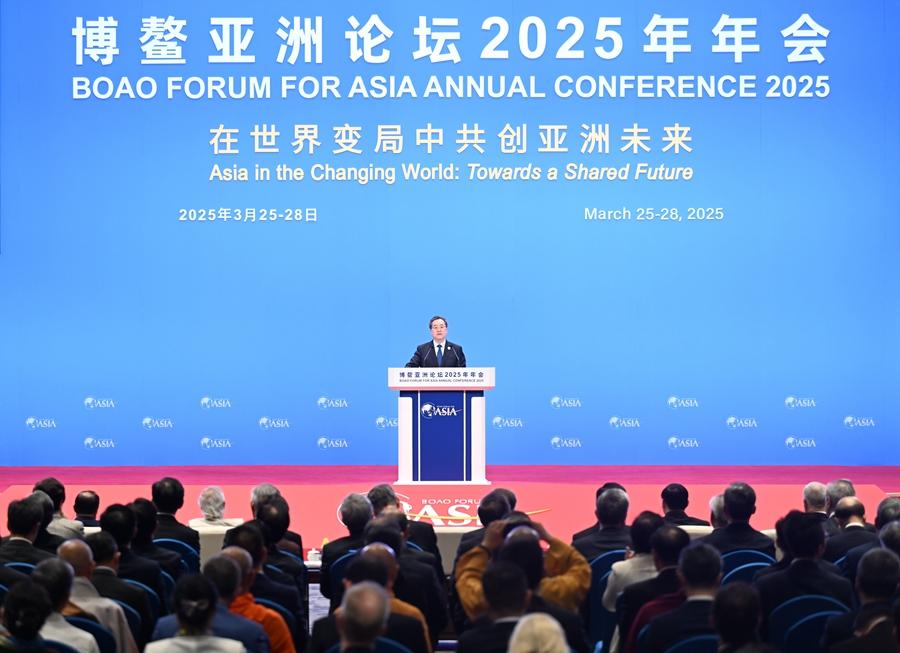 3月27日上午,中共中央政治局常委、國務(wù)院副總理丁薛祥在海南博鰲出席博鰲亞洲論壇2025年年會開幕式,發(fā)表題為《共迎全球挑戰(zhàn) 共建亞洲家園》的主旨演講。新華社記者 李響 攝