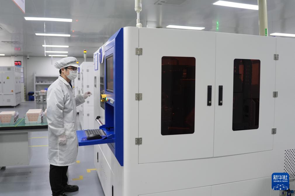 技術(shù)工人在寧波江豐同芯半導(dǎo)體材料有限公司的智能生產(chǎn)車間作業(yè)(3月20日攝)。