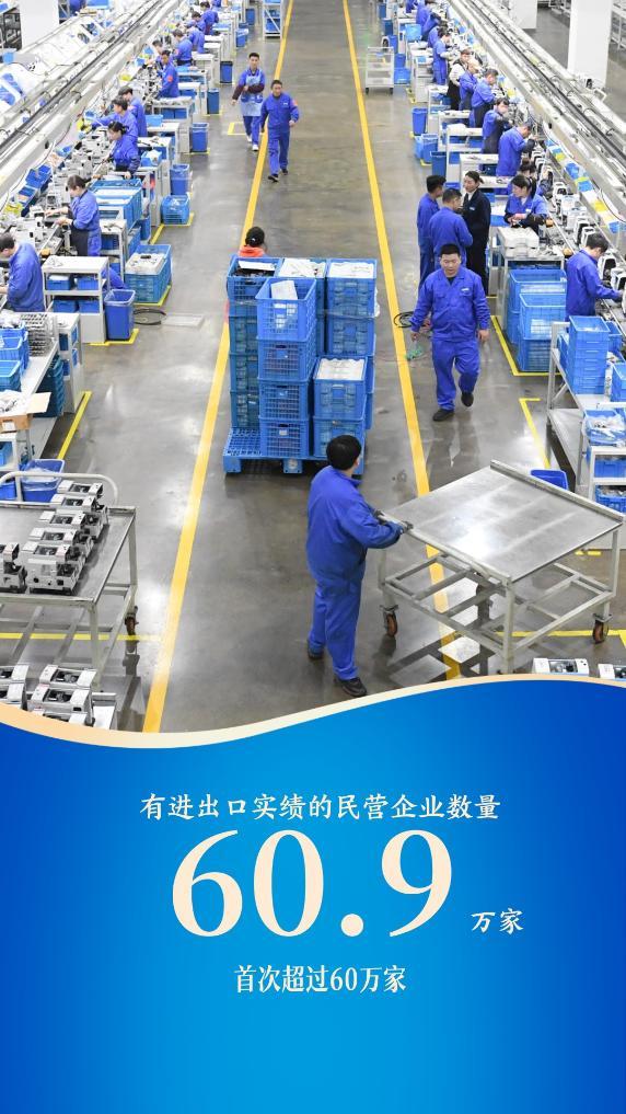有進(jìn)出口實績的民營企業(yè)數(shù)量首次超過60萬家,達(dá)到60.9萬家,持續(xù)為外貿(mào)發(fā)展注入新生力量。