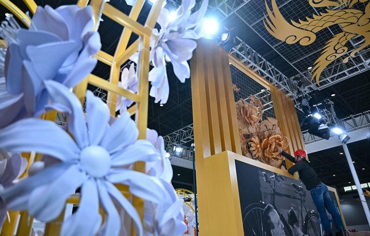 4月10日,展商在消博會主場館布展。 新華社記者 郭程 攝
