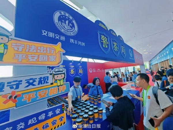 在第五屆中國國際消費品博覽會上,海南海口警方的“警‘茶’局”公益宣傳展區(qū)格外引人注目。在現(xiàn)場,只要參與交通安全知識問答、禁毒知識問答等普法活動,就可品嘗到印有文明交通標語的免費茶飲,收獲交警小熊、??诮竟械榷Y品,不少國內(nèi)外參展客商、市民游客融入其中,現(xiàn)場氛圍十分活躍。除此之外,現(xiàn)場還可觀摩仿真毒品模型、與民警面對面交流,深入了解法律知識,提高安全防范意識。創(chuàng)新宣傳,寓教于樂,這場盛會也因警方這樣的貼心守護更顯生動。