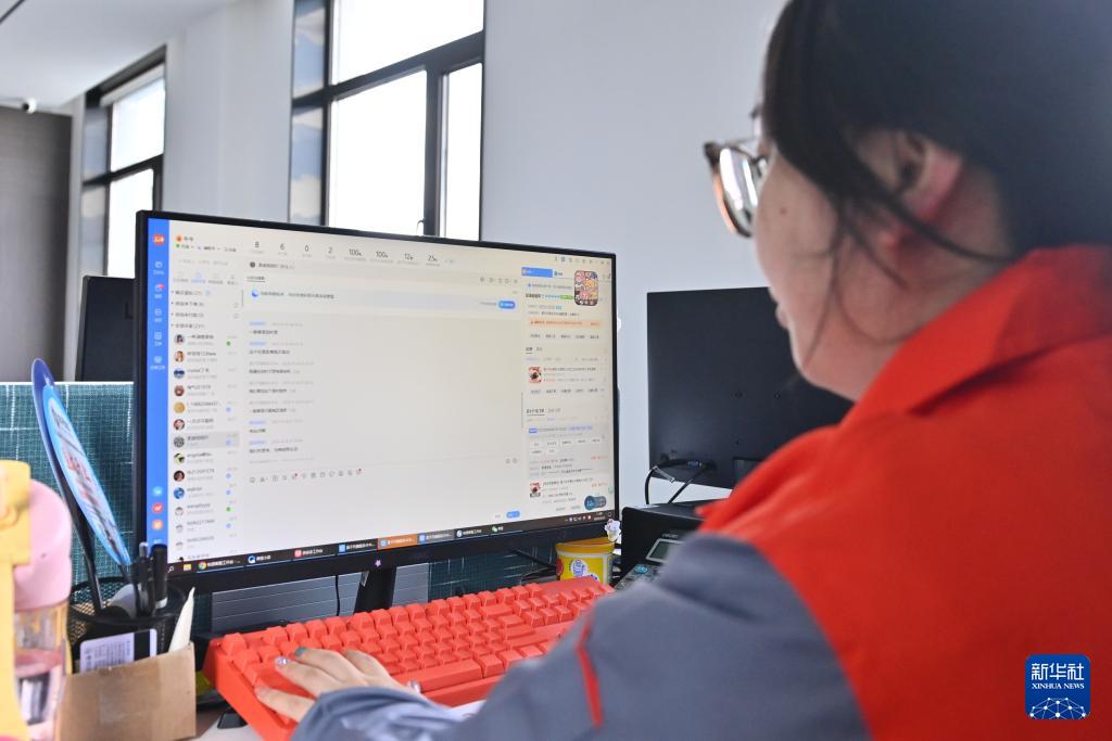4月24日,在位于遼陽市的遼寧鑫金科技實業(yè)集團有限公司電商部內(nèi),工作人員在線上和顧客溝通。