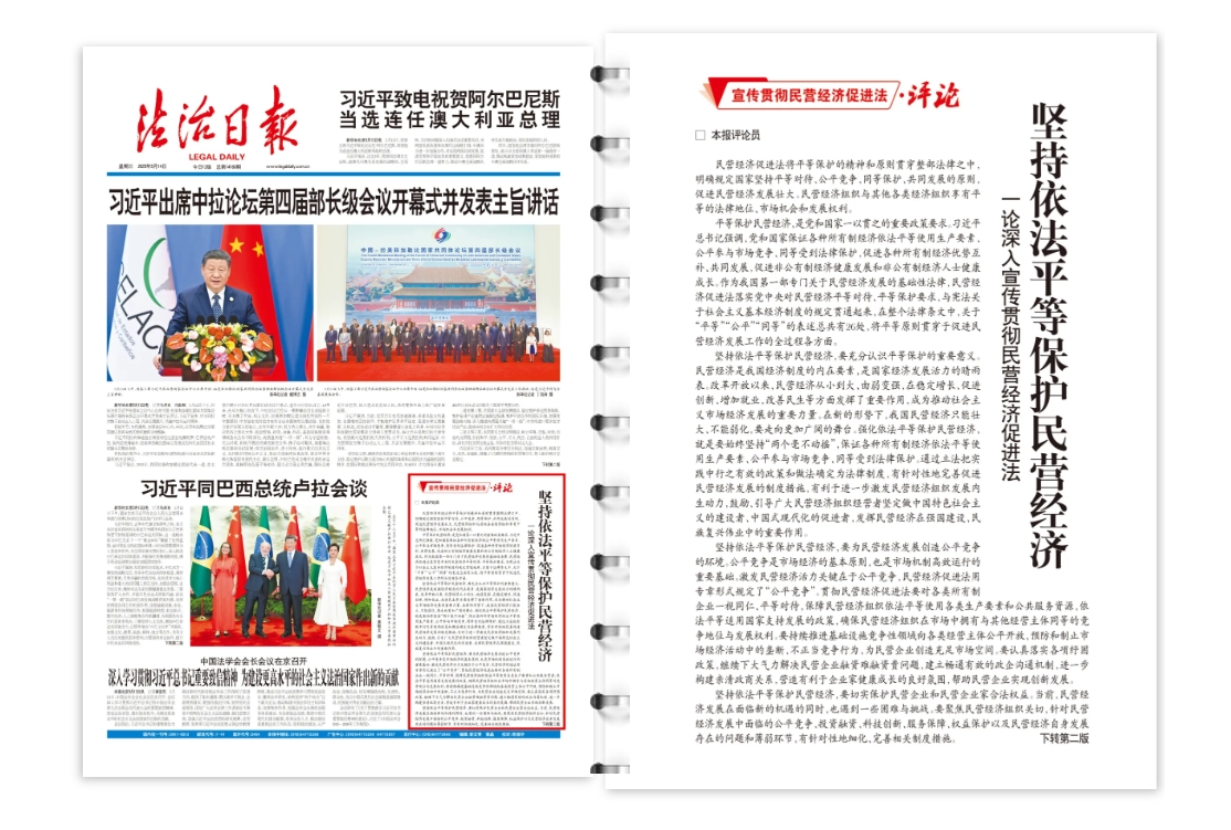 平等保護民營經(jīng)濟,是黨和國家一以貫之的重要政策要求。習近平總書記強調(diào),黨和國家保證各種所有制經(jīng)濟依法平等使用生產(chǎn)要素、公平參與市場競爭、同等受到法律保護,促進各種所有制經(jīng)濟優(yōu)勢互補、共同發(fā)展,促進非公有制經(jīng)濟健康發(fā)展和非公有制經(jīng)濟人士健康成長。作為我國第一部專門關于民營經(jīng)濟發(fā)展的基礎性法律,民營經(jīng)濟促進法落實黨中央對民營經(jīng)濟平等對待、平等保護要求,與憲法關于社會主義基本經(jīng)濟制度的規(guī)定貫通起來,在整個法律條文中,關于“平等”“公平”“同等”的表述總共有26處,將平等原則貫穿于促進民營經(jīng)濟發(fā)展工作的全過程各方面。