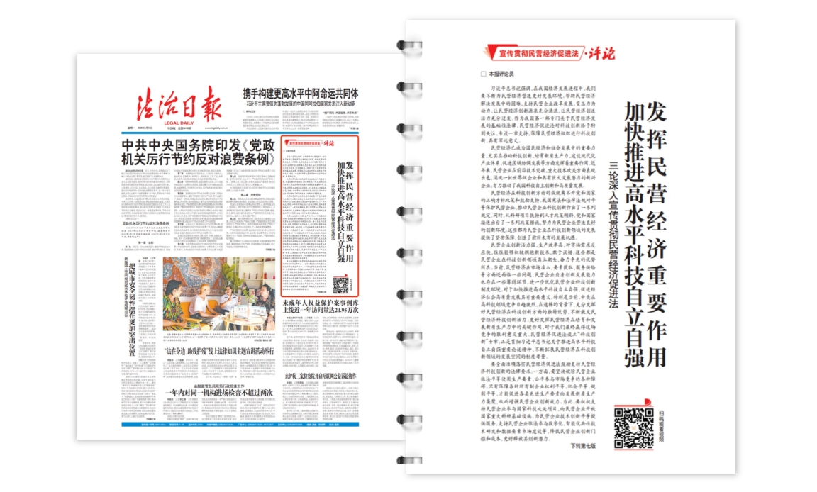 民營(yíng)企業(yè)創(chuàng)新活力強(qiáng)、生產(chǎn)效率高、對(duì)市場(chǎng)需求反應(yīng)快,往往能夠積極擁抱新技術(shù)、敢于試錯(cuò)。這些都是民營(yíng)企業(yè)在科技創(chuàng)新領(lǐng)域勇立潮頭、奮力爭(zhēng)先的優(yōu)勢(shì)所在。當(dāng)前,民營(yíng)經(jīng)濟(jì)在市場(chǎng)準(zhǔn)入、要素獲取、服務(wù)供給等方面還面臨一些問(wèn)題,民營(yíng)企業(yè)自身創(chuàng)新發(fā)展能力也存在一些薄弱環(huán)節(jié)。進(jìn)一步優(yōu)化民營(yíng)企業(yè)科技創(chuàng)新制度環(huán)境,對(duì)于加快推進(jìn)高水平科技自立自強(qiáng)、促進(jìn)經(jīng)濟(jì)社會(huì)高質(zhì)量發(fā)展具有重要意義。特別是當(dāng)前,中美在高科技領(lǐng)域競(jìng)爭(zhēng)日趨激烈,在這樣的背景下,充分發(fā)揮好民營(yíng)經(jīng)濟(jì)在科技創(chuàng)新方面的獨(dú)特優(yōu)勢(shì),不斷激發(fā)民營(yíng)經(jīng)濟(jì)科技創(chuàng)新活力,更好發(fā)揮民營(yíng)經(jīng)濟(jì)在培育和發(fā)展新質(zhì)生產(chǎn)力中的關(guān)鍵作用,對(duì)于我們最終贏得這場(chǎng)競(jìng)爭(zhēng)的勝利意義重大。民營(yíng)經(jīng)濟(jì)促進(jìn)法設(shè)立“科技創(chuàng)新”專章,正是貫徹習(xí)近平總書(shū)記關(guān)于推進(jìn)高水平科技自立自強(qiáng)重要論述精神、不斷拓展民營(yíng)經(jīng)濟(jì)在科技創(chuàng)新領(lǐng)域的發(fā)展空間的制度考量。