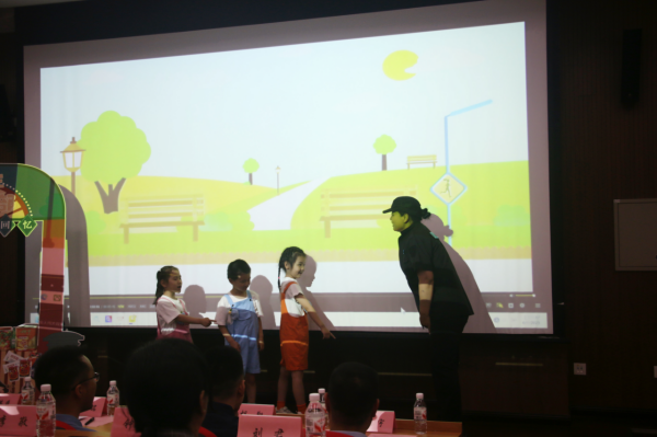 互動提問環(huán)節(jié)中,孩子們踴躍發(fā)言,圍繞校園欺凌、網(wǎng)絡(luò)安全等熱點問題與大學生展開交流,在思維的碰撞中深化了對法律知識的理解。此外,幼兒園小朋友表演的《安全大闖關(guān)——不輕信陌生人》情景劇,以童真童趣的方式傳遞了自我保護的法治理念。