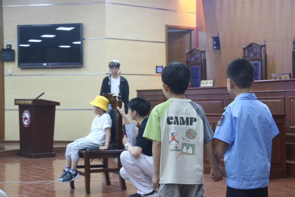 本次活動以“沉浸式體驗”為核心,設(shè)計了一系列兼具趣味性與普法教育意義的環(huán)節(jié)。在模擬法庭環(huán)節(jié),大學生通過逼真的情景劇展示,還原了真實的司法審判場景,讓在場的小學生與幼兒直觀感受到法律的嚴肅性與權(quán)威性。