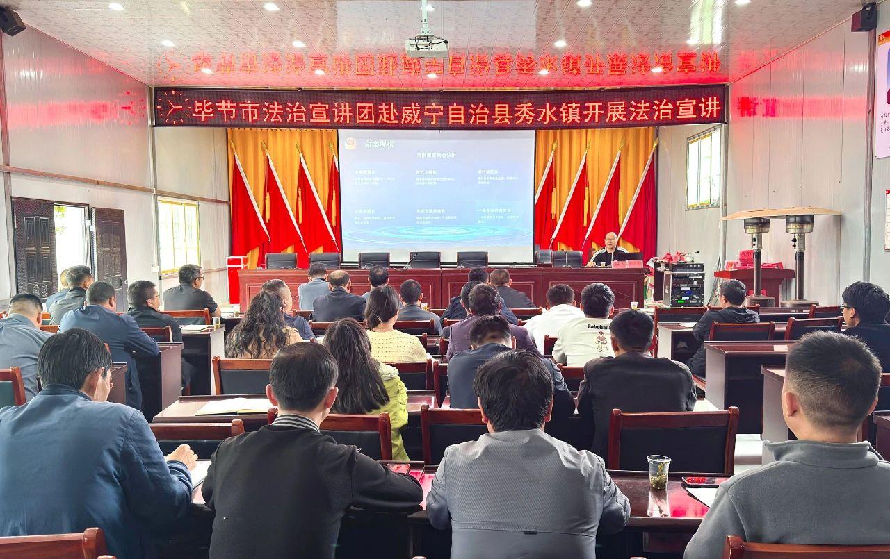 近日,由貴州省畢節(jié)市委政法委、市法學(xué)會(huì)組織的法治宣講團(tuán)走進(jìn)威寧自治縣觀風(fēng)海鎮(zhèn)、秀水鎮(zhèn)開(kāi)展法治宣講活動(dòng)。畢節(jié)市委政法委、市法學(xué)會(huì)、市人民法院、市公安局及自治縣委政法委、縣法學(xué)會(huì)出席會(huì)議,觀風(fēng)海鎮(zhèn)、秀水鎮(zhèn)相關(guān)負(fù)責(zé)同志及村(社區(qū))“兩委”班子近百人參與學(xué)習(xí)。通過(guò)一堂兼具專(zhuān)業(yè)性與實(shí)用性的法治課,為基層治理注入法治力量。