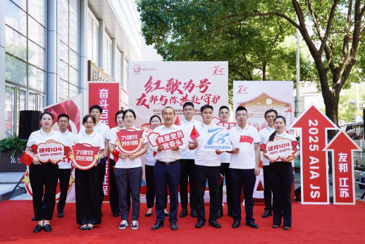 2025年7月1日,在中國共產(chǎn)黨成立104周年之際,友邦人壽保險有限公司江蘇分公司(以下簡稱“友邦江蘇”)在全省12個分支機構(gòu)同步開展“紅歌為號,友邦與你共赴守護”紅歌合唱快閃活動,以激昂的紅歌旋律獻禮黨的生日,同時積極響應(yīng)2025年“7.8全國保險公眾宣傳日”主題“愛和責(zé)任,保險讓生活更美好”,將紅色基因與保險行業(yè)的社會責(zé)任深度融合,傳遞守護民生的堅定信念。