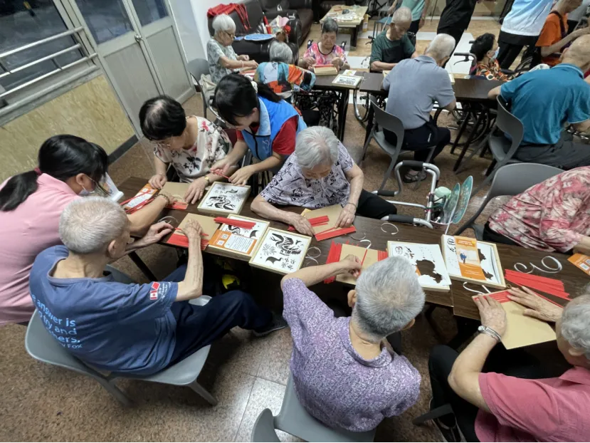 2.巧手頌黨,匠心傳承:在溫馨愉悅的氛圍中,黨員、志愿者們與長(zhǎng)者攜手進(jìn)行“竹編畫手工DIY”。大家一邊學(xué)習(xí)傳統(tǒng)竹編技藝,一邊將愛(ài)黨情懷融入指尖創(chuàng)作,共同編織出一幅幅飽含深情的“丹青畫卷”,在動(dòng)手實(shí)踐中感悟匠心,傳遞對(duì)黨的祝福。