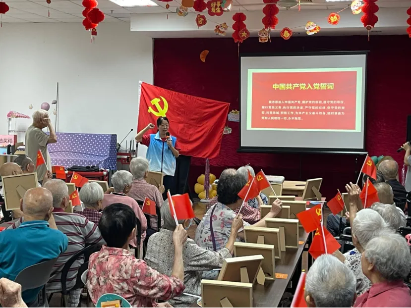 ●銘記光輝,汲取力量:活動(dòng)伊始,全體黨員和長(zhǎng)者們共同觀看了精心準(zhǔn)備的黨史短片。短片濃縮了黨波瀾壯闊的104年奮斗歷程,展現(xiàn)了共產(chǎn)黨人矢志不渝的初心使命和改天換地的偉大成就。在黨史光輝的映照下,大家共同追憶崢嶸歲月,感悟信仰力量,為后續(xù)環(huán)節(jié)奠定了深厚的情感與思想基礎(chǔ)。