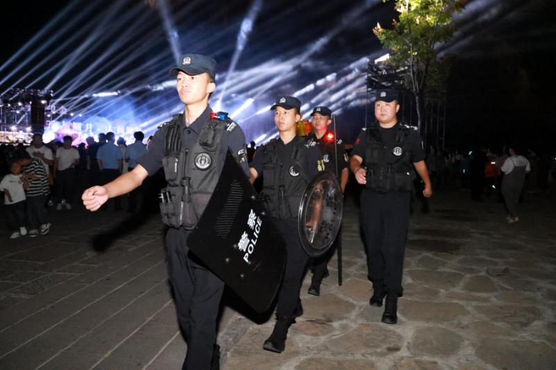 夜幕降臨,華燈點亮貫城河,平遠古鎮(zhèn)與大府頭廣場游人如織。裝備齊整的民警、英姿颯爽的特警,成為熙攘人潮中最安心的存在?!拔覀儽仨毘B(tài)化巡邏,確保群眾第一時間能找到警察?!彪p堰派出所民警余莎的話語,道出了“流動管家”的日常。