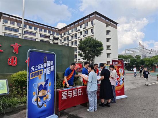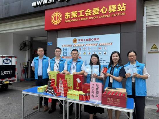 在東莞市匯峰中心,前海人壽東莞分公司的志愿者搭建起服務(wù)站點(diǎn),為環(huán)衛(wèi)工人、快遞員、外賣員等戶外工作者送上清涼飲品,同時結(jié)合宣傳材料講解電信詐騙手法和防范要點(diǎn),在送上夏日關(guān)懷的同時有效提升群眾金融風(fēng)險防范意識。