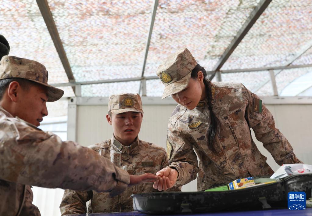 聯(lián)勤保障部隊(duì)第941醫(yī)院重癥醫(yī)學(xué)科主任張瑛(右)在邊防哨所巡診(2022年3月20日攝)。新華社發(fā)(孟釗 攝)