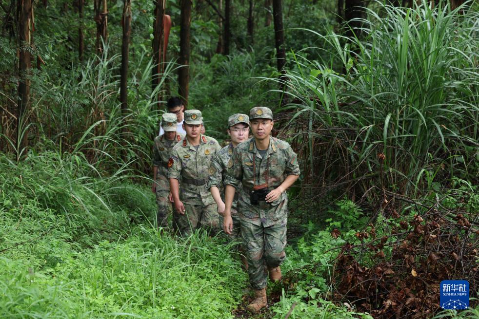 廣西軍區(qū)某部謝亮(前一)組織軍地人員聯(lián)合勘察(資料照片)。 新華社發(fā)(梁凱昌攝)