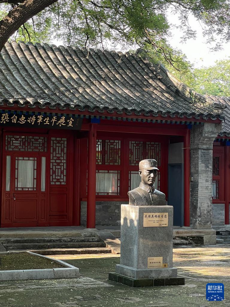 這是位于北京市自忠小學(xué)內(nèi)的張自忠雕像(8月6日攝,手機(jī)照片)新華社記者 陳鐘昊 攝