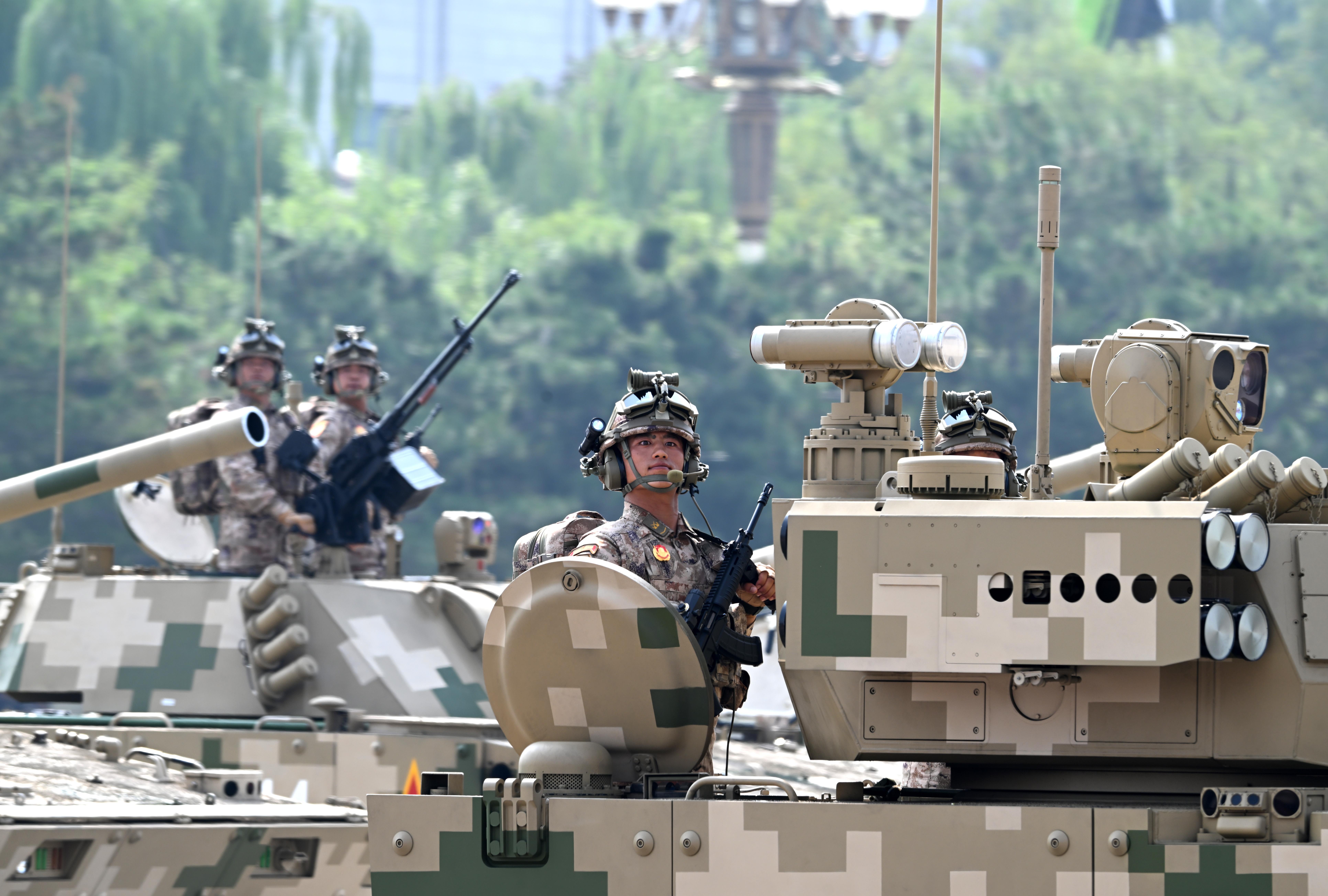 中國(guó)人民解放軍儀仗方隊(duì)接受檢閱。