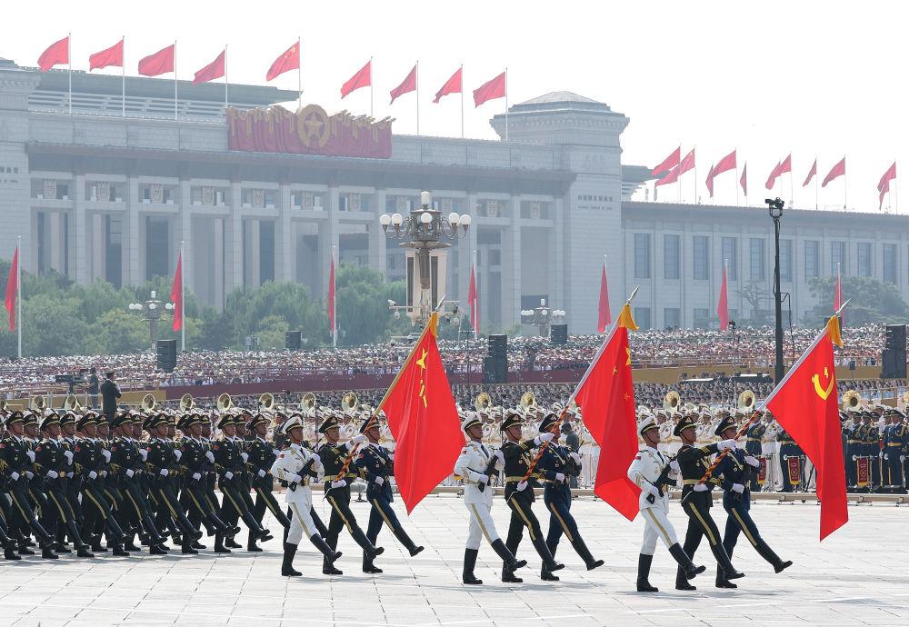 陸軍、海軍、空軍、火箭軍和軍事航天部隊、網絡空間部隊、信息支援部隊、聯勤保障部隊“4個軍種+4個兵種”新型軍兵種結構布局首次集體受閱,軍兵種旗和武警部隊旗首次集中亮相。