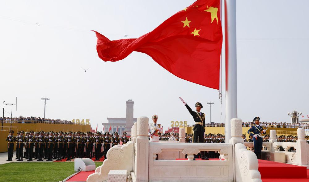 2025年9月3日,紀念中國人民抗日戰(zhàn)爭暨世界反法西斯戰(zhàn)爭勝利80周年大會在北京隆重舉行。這是天安門廣場舉行隆重的升國旗儀式。新華社記者 費茂華 攝