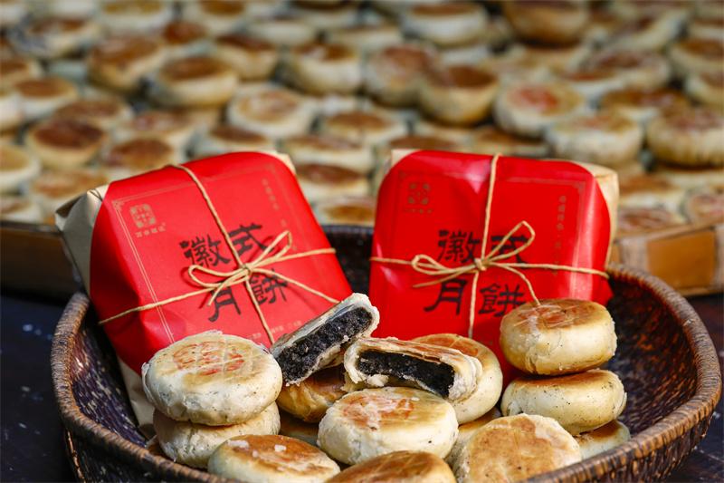 臨近中秋,在有著1700多年歷史的安徽省休寧縣萬安老街內(nèi),制餅師傅經(jīng)過“制油酥、搟面皮、包餡、固形、蓋印和烘烤”等多道工序后,制作出外酥里糯、口感鮮美的“徽式麻仁月餅”,作為古徽州中秋佳節(jié)傳統(tǒng)糕點(diǎn),深受百姓喜愛。