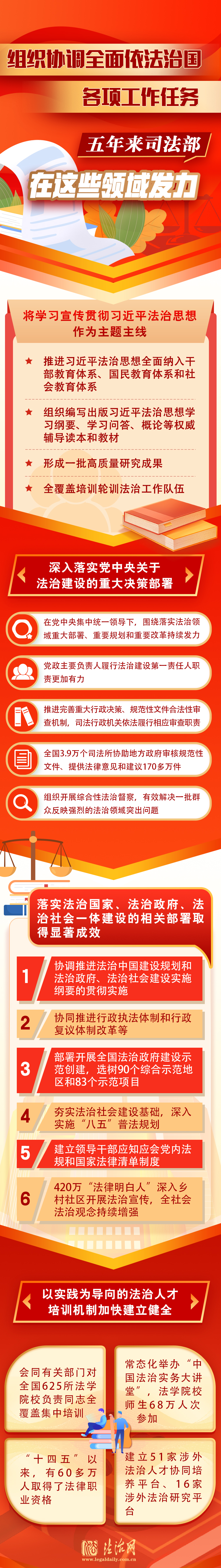 “十四五”期間,在協(xié)調(diào)推進全面依法治國工作落實方面,司法部在哪些領域發(fā)力?