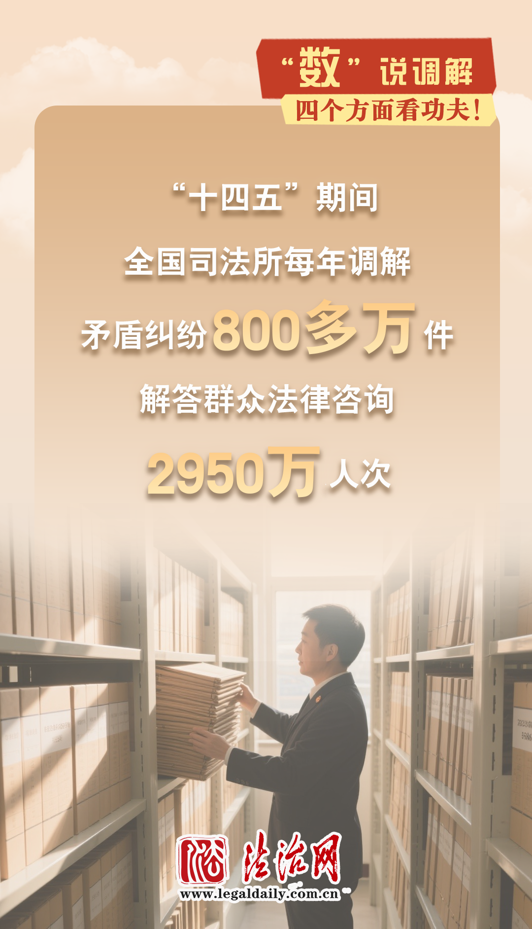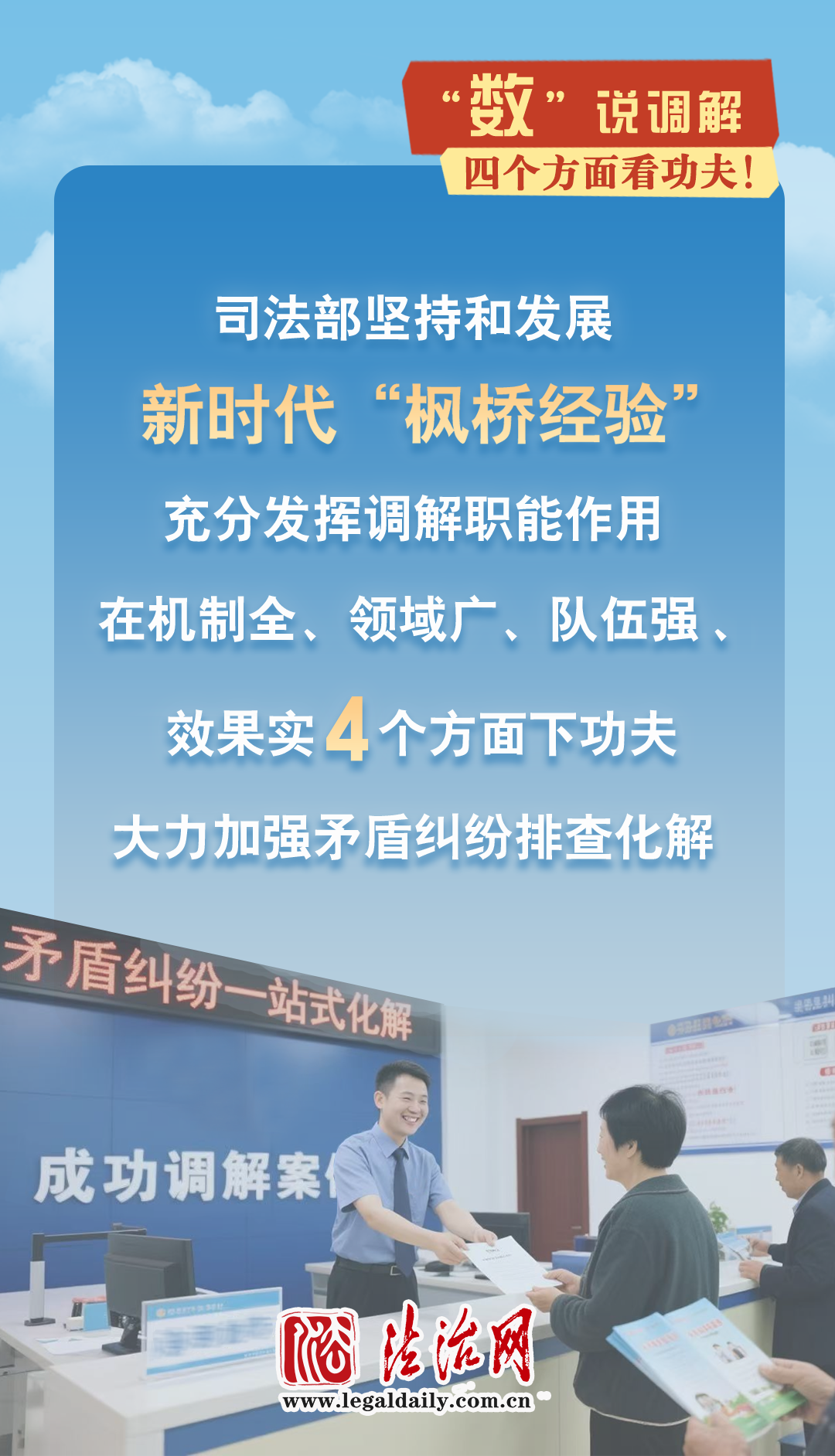 “十四五”期間,司法部堅(jiān)持和發(fā)展新時(shí)代“楓橋經(jīng)驗(yàn)”,充分發(fā)揮調(diào)解的職能作用,在機(jī)制全、領(lǐng)域廣、隊(duì)伍強(qiáng)、效果實(shí)四個(gè)方面下功夫,大力加強(qiáng)矛盾糾紛的排查化解,切實(shí)保障群眾合法權(quán)益,維護(hù)社會(huì)和諧穩(wěn)定。