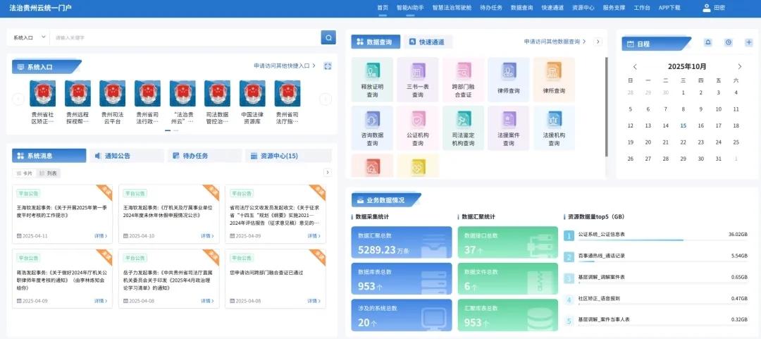 這三個(gè)入口,如同三個(gè)集約高效的“服務(wù)總臺(tái)”,既面向內(nèi)部工作人員,也面向社會(huì)公眾。它背后是“1136”體系架構(gòu)的支撐——1個(gè)大數(shù)據(jù)中心、1個(gè)智慧司法駕駛艙、3大入口、6大業(yè)務(wù)應(yīng)用——共同構(gòu)筑了貴州“智慧法治”的“四梁八柱”。