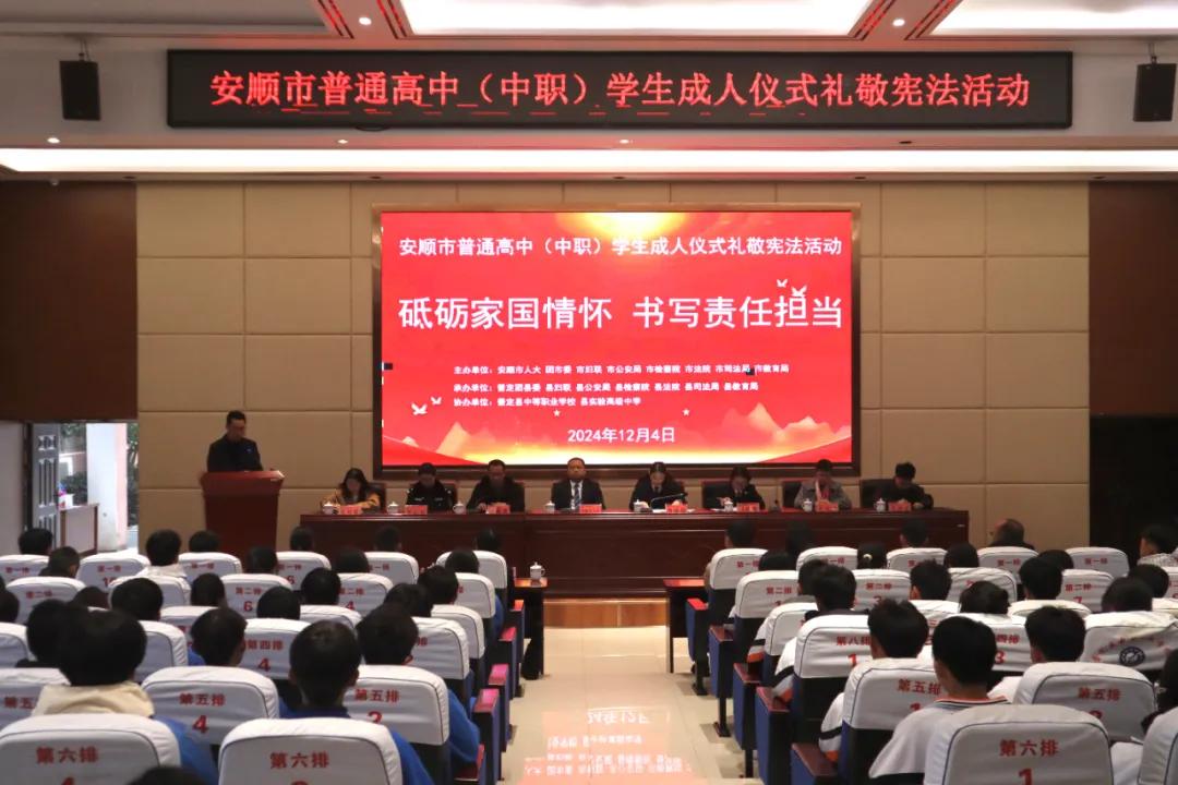圖為安順市普通高中(中職)學(xué)生成人儀式禮敬憲法活動。